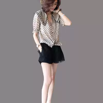 European station 2021 summer new European tidal wave wave point shirt short sleeve double collar loose mercerized cotton coat women