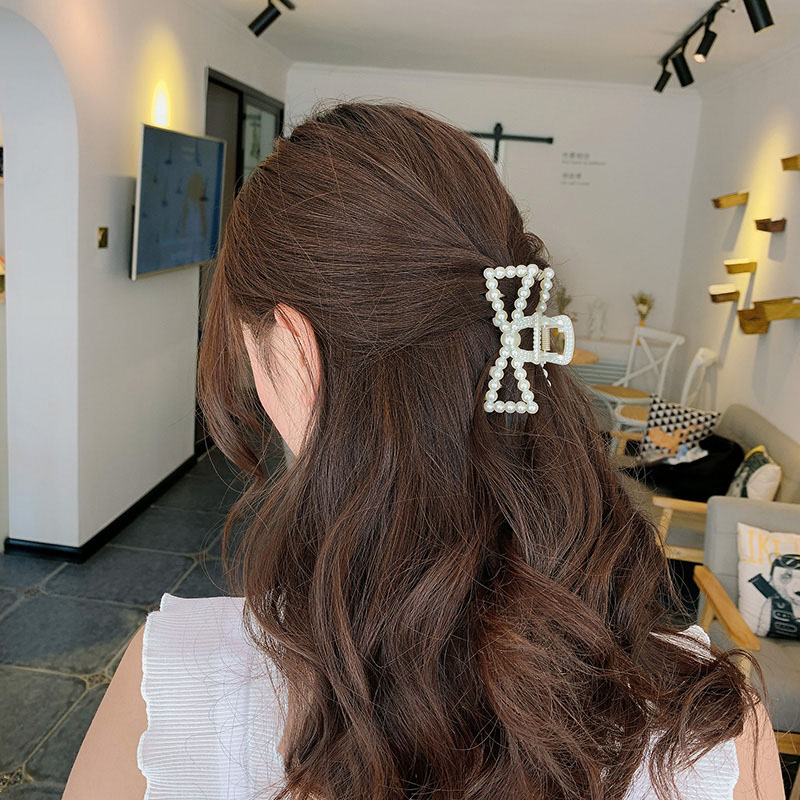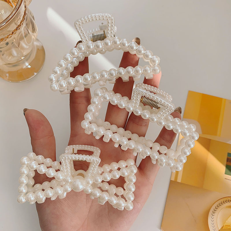 Korean net red pearl hair clip grabbing hair clip simple back head plate hair clip elegant shark clip hair card headdress