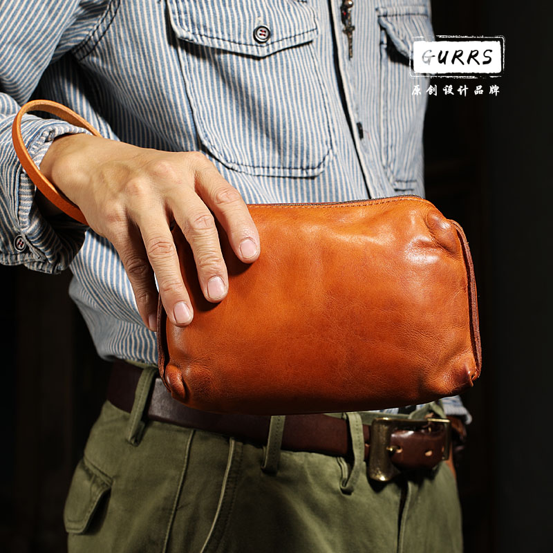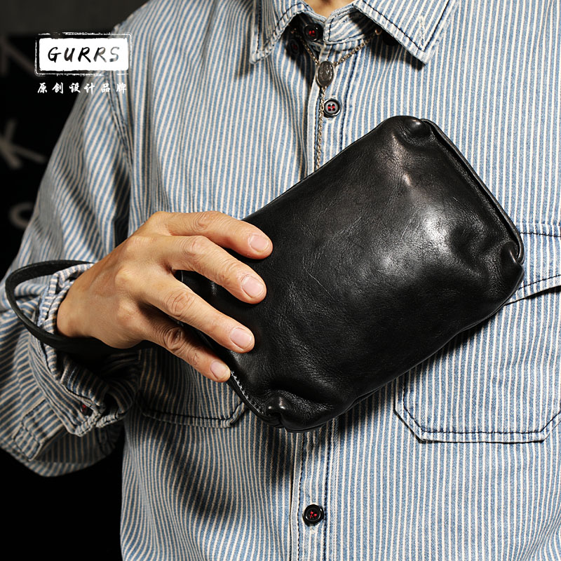 GurRS original hand-made man with bag head soft bull leather handbag men retro-made old casual mini-bag