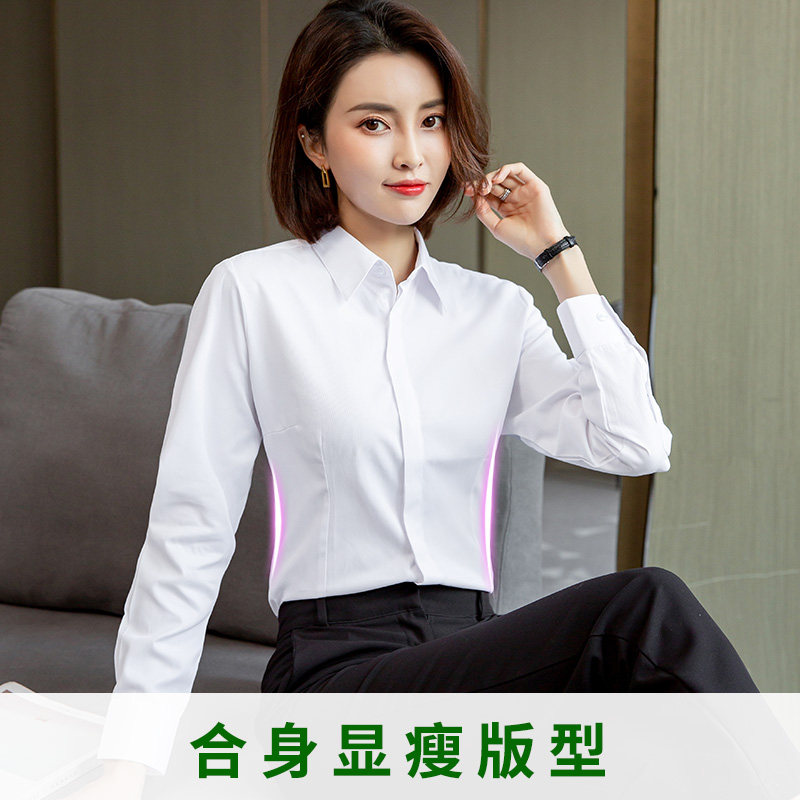 White shirt ladies long sleeves 2022 new spring and autumn plus velvet professional formal wear warm Korean version of short-sleeved shirt workwear