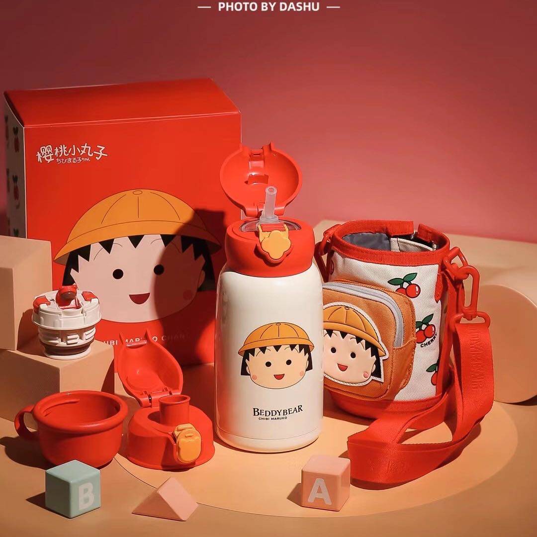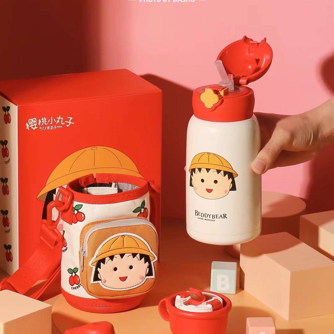 Cup with Bear Children's insulated cup with straw Dual-purpose water glass Kindergarten male and female Primary students Baby Franchise Official