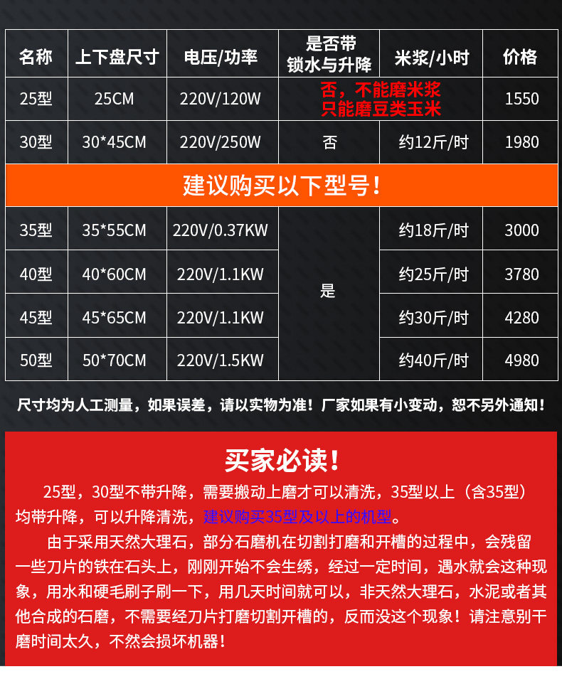 Type 30 (no lifting, no water locking) 35 type (with lifting with water lock) 40 type (with lifting with water lock) 45 type (with lifting with water lock) 50 type (with lift with water lock) 12 type grinding wheel (simple version)