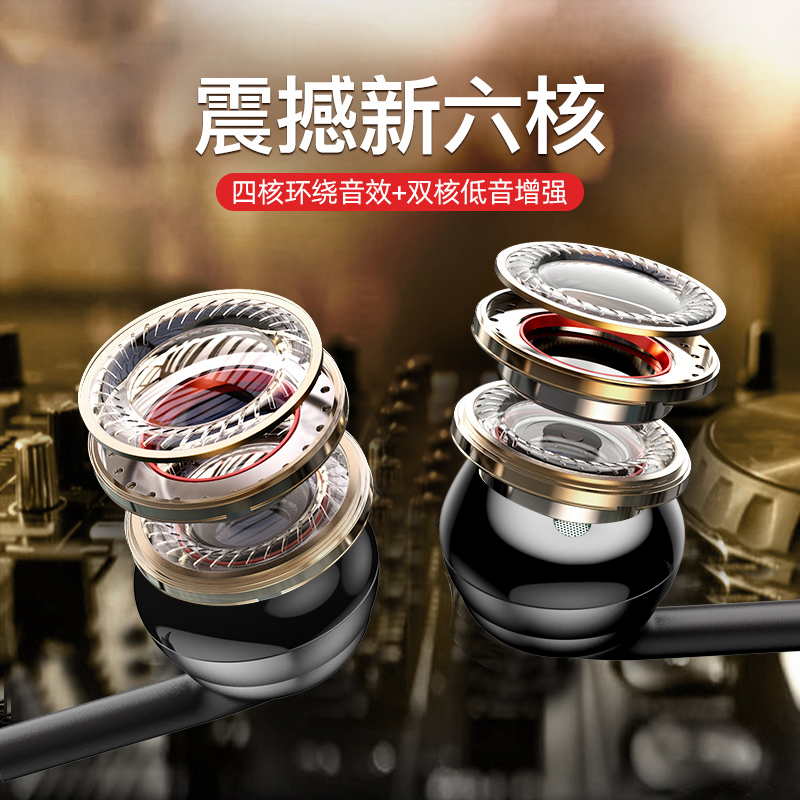 (3 5mm round hole) cool black, six-core sound, one-year warranty