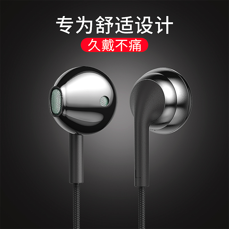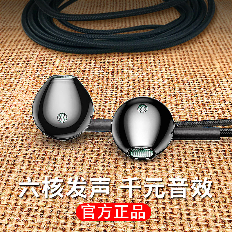 Headphones wired in-ear high sound quality original suitable for Huawei vivo Xiaomi oppo Apple mobile phone Android universal earplugs with microphone karaoke game long-wearing painless round hole wire control