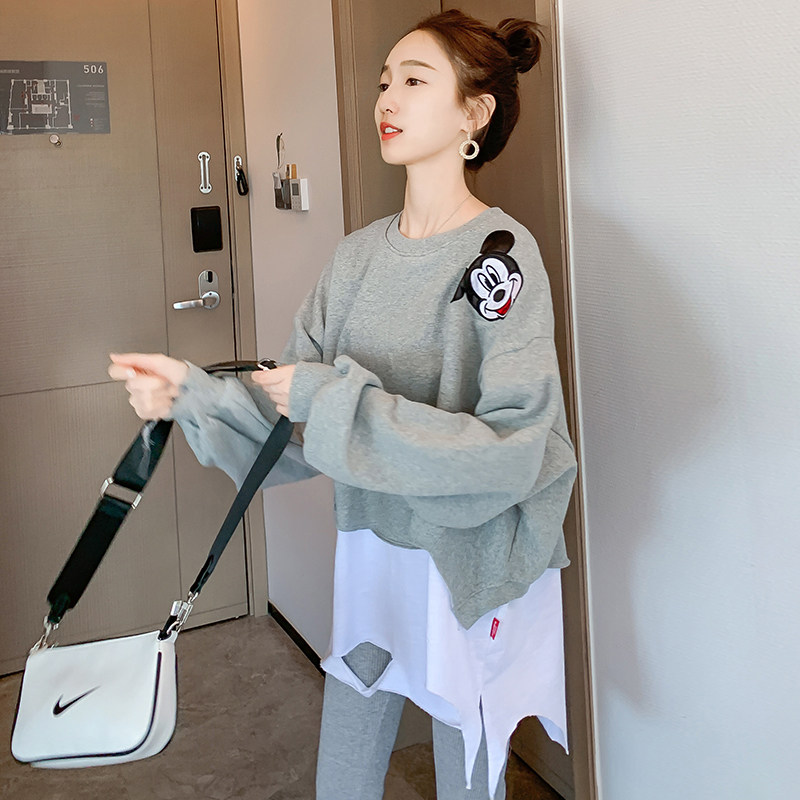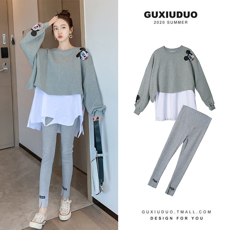Pregnant women's spring clothing suit net red large code medium long clothing spring and autumn style sports blouse pants two sets of ocean gas tide-Taobao