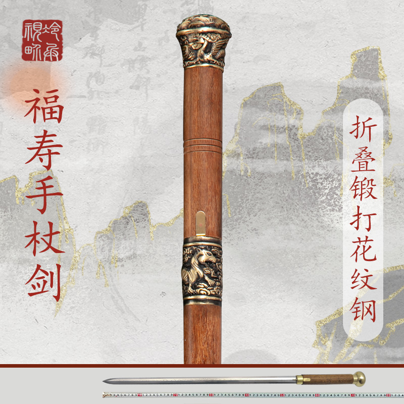 Handmade bag copper cane sword bronze head Sword Flower Pattern Steel High Manganese Steel Knife Sword Longquan Cold Soldier View Unopened Blade