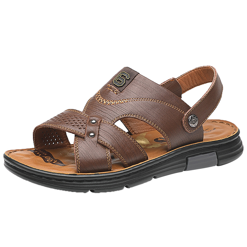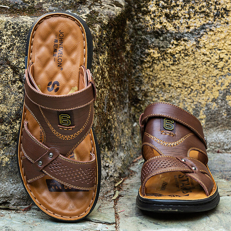 Leather sandals men's dermis Summer 2022 new men's cool slippers non-slip Soft bottom Dual-use beach shoes