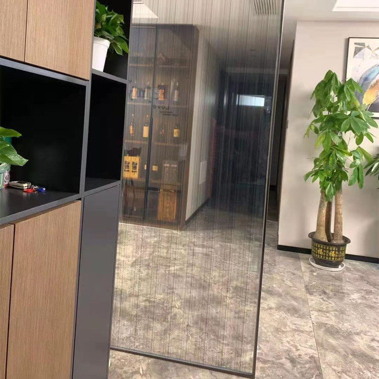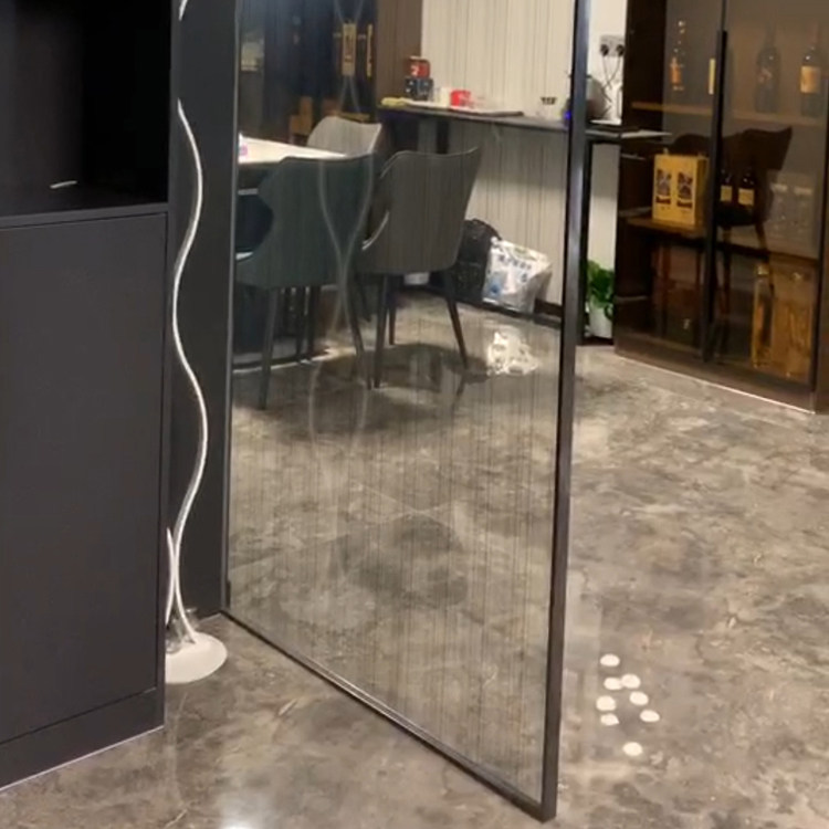 Black extremely narrow stainless steel border vertical grained wire mesh art glass screen partition full welded brushed no fingerprint light luxury