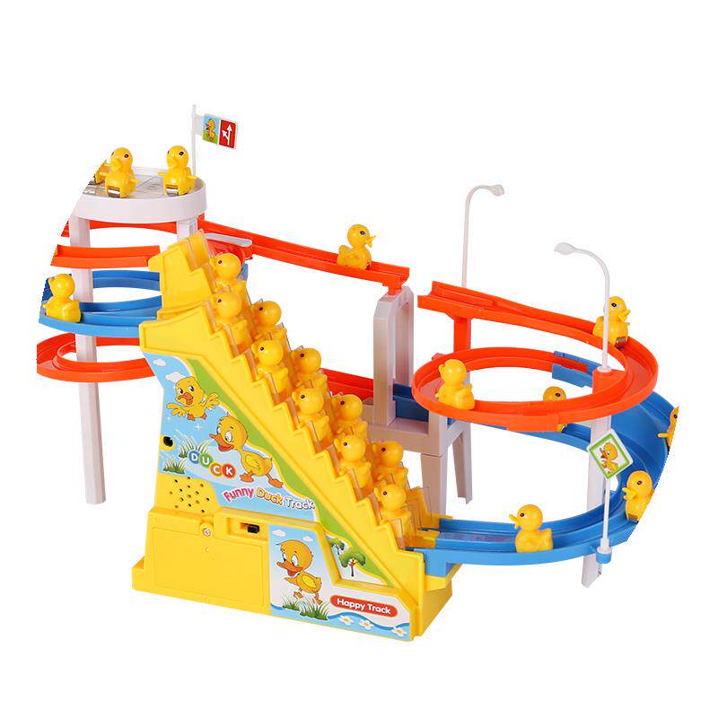 Little duck up stairs toy slide home small cartoon tremble automatic rail car ladder mini music