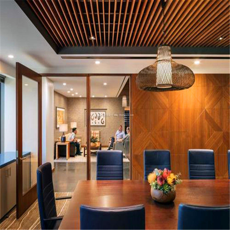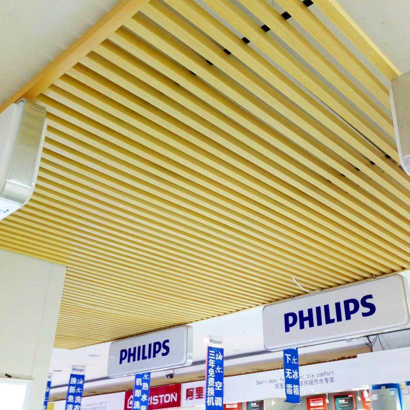 Ecological wood ceiling 50*100 ceiling U-shaped buckle square pass PVC grille restaurant supermarket green wooden balcony shopping mall