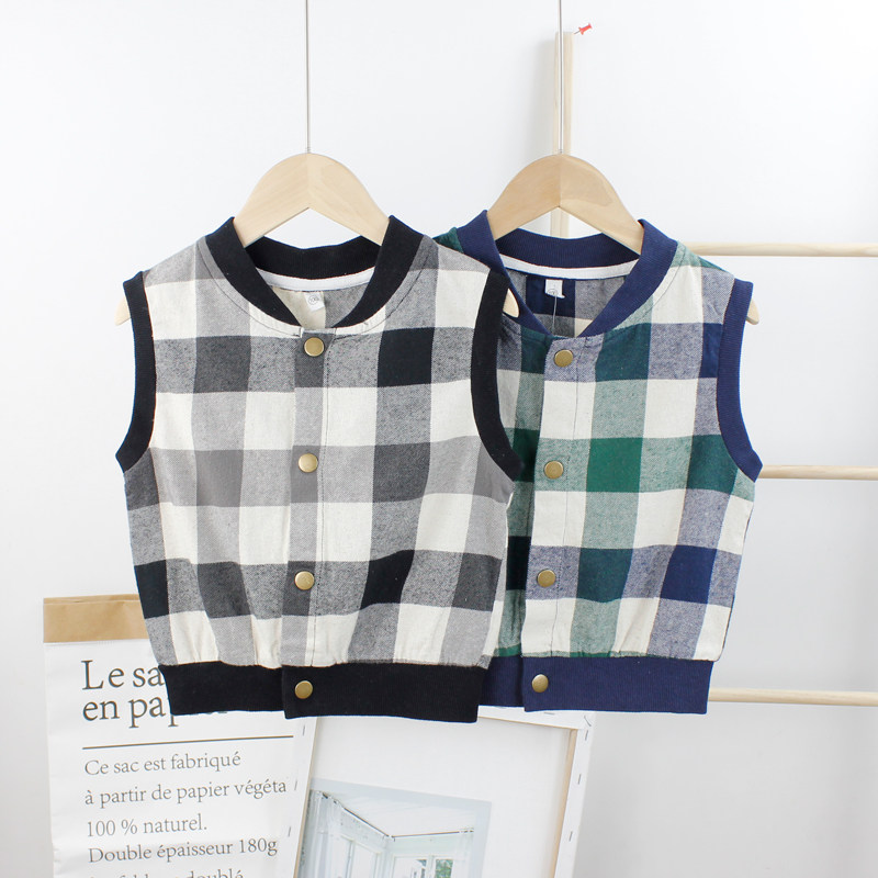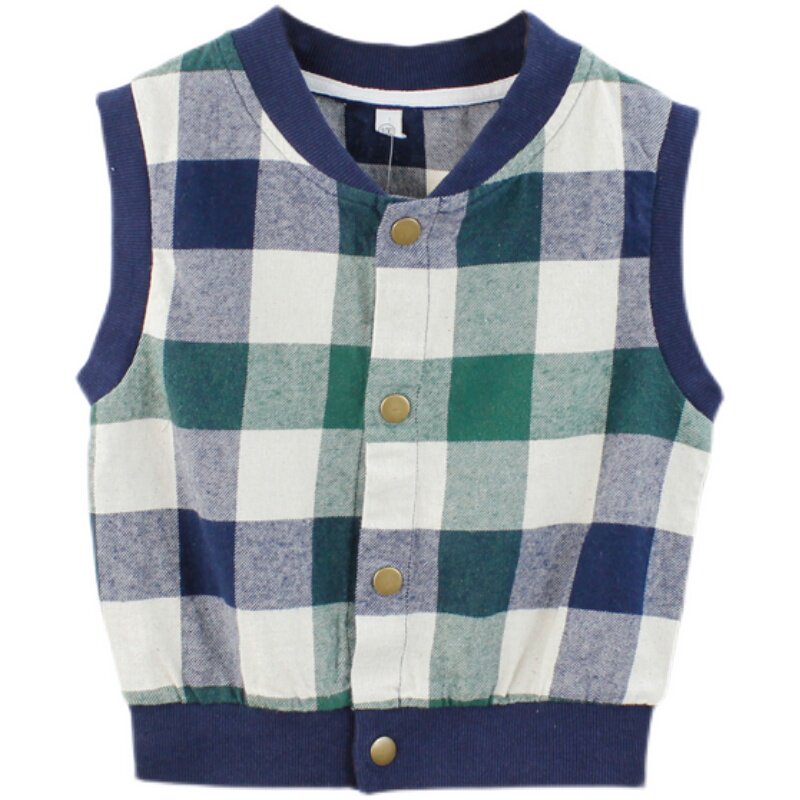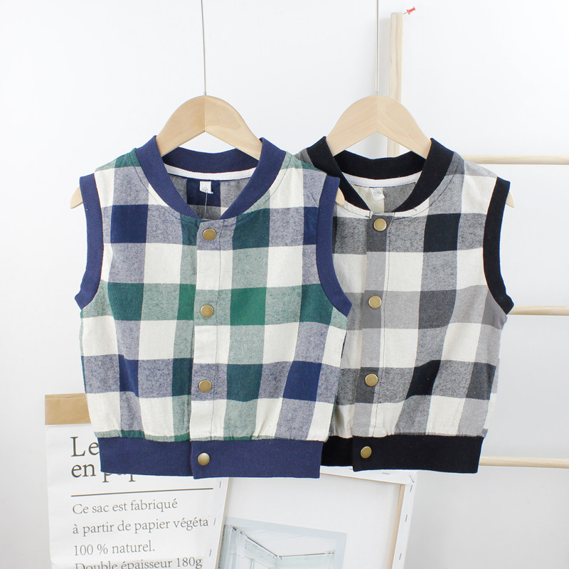 100 lap boy pure cotton plaid waistcoat 2022 spring autumn new men and women's vest art Fan Yang sends baby Khamshoulder
