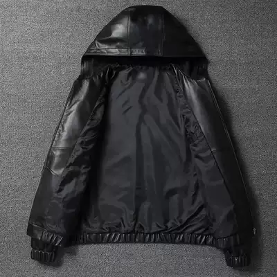 Imported top sheepskin casual leather jacket hooded leather jacket men's hooded cotton short youth slim coat