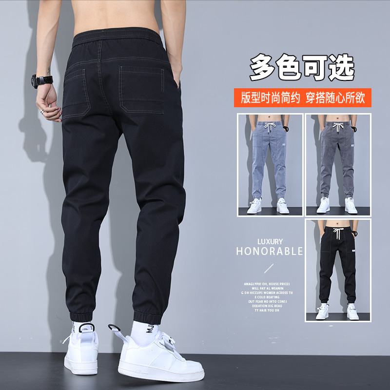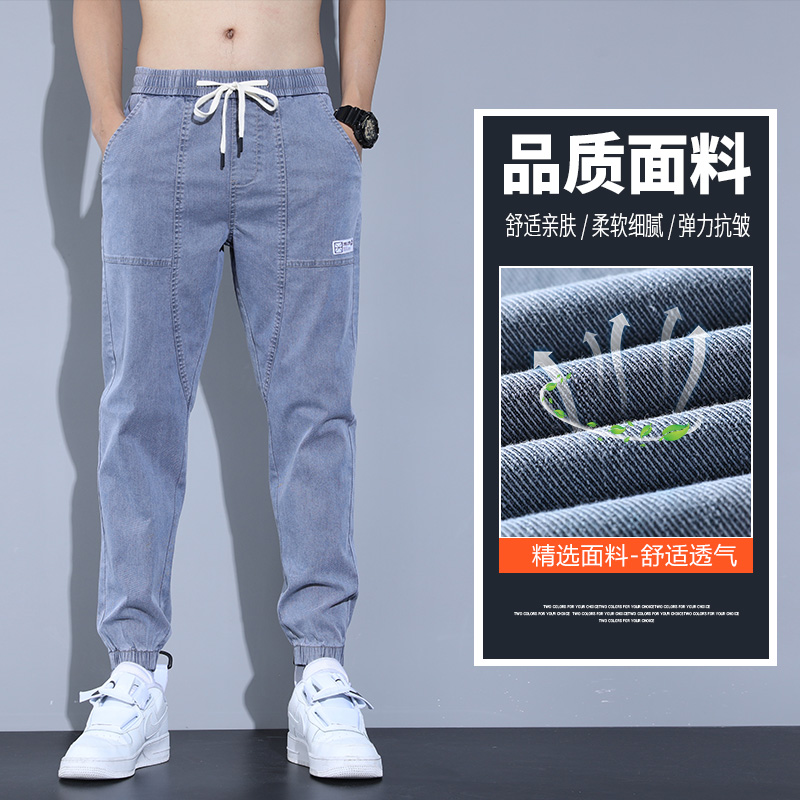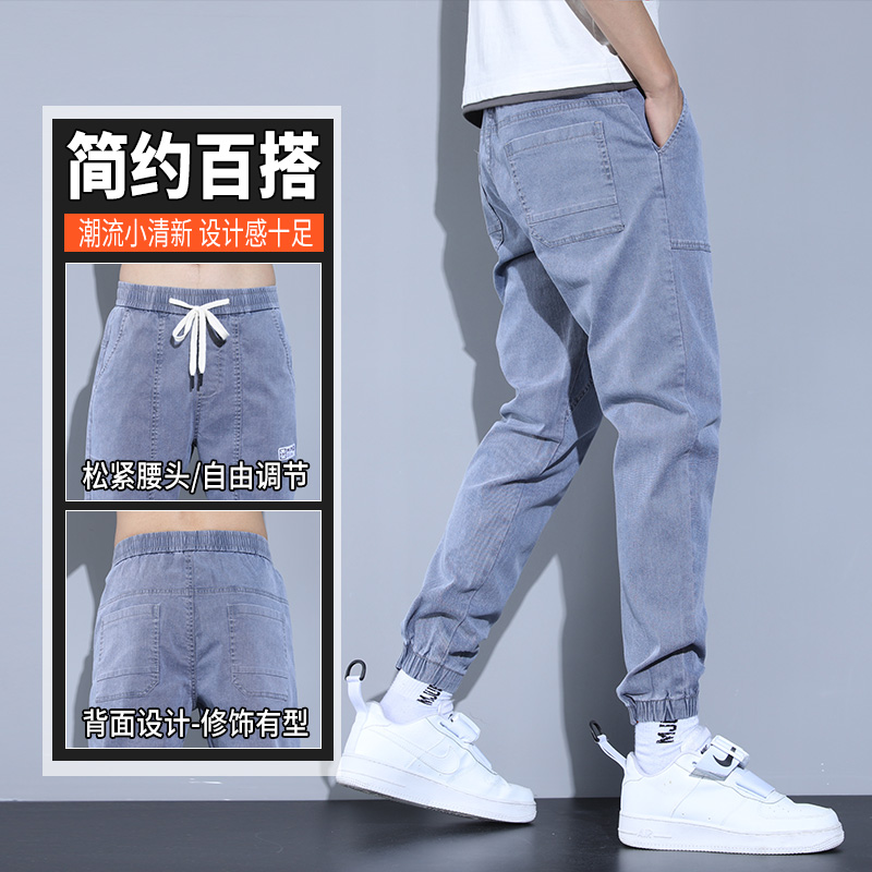 Men's Jeans 2022 New Spring Summer Loose Bunches Foot Tooling Casual Pants Guys Splicing Summer Fit Pants Men