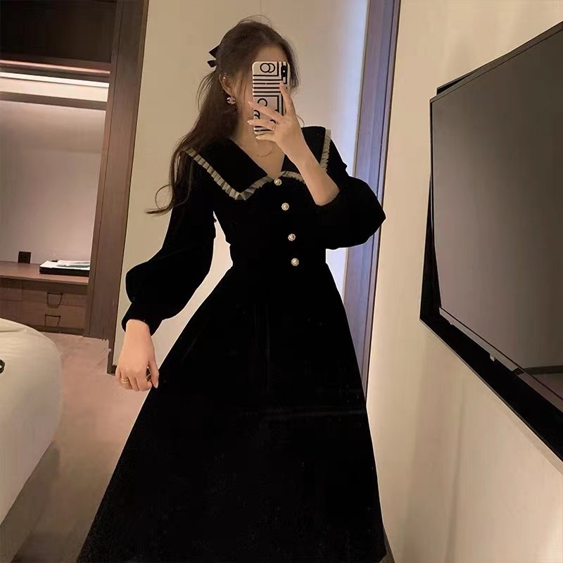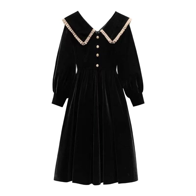 SANDRO mossoloni doll collar gold velvet dress women's fall new small fragrance gown dresses