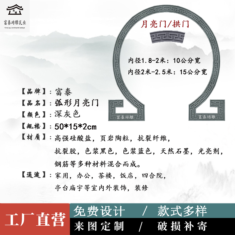 Moon door brick carving Arch door sleeve line circular arc Antique line Chinese courtyard decoration green brick back line
