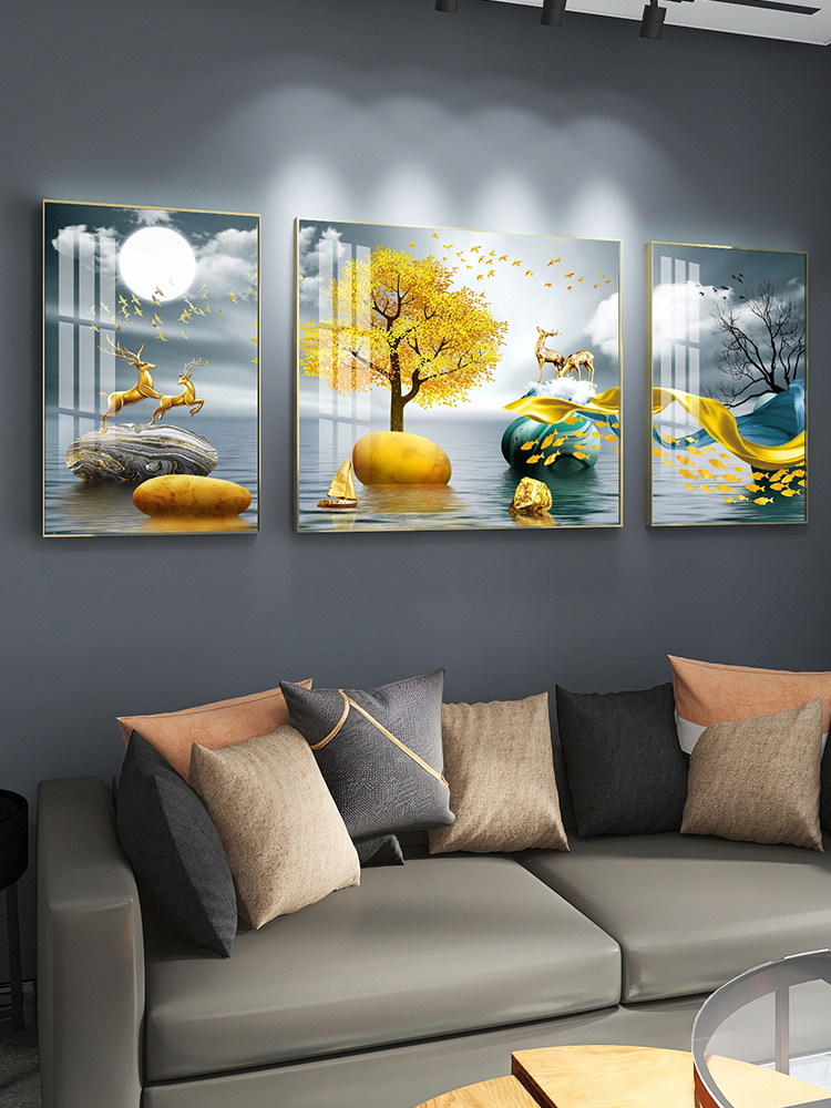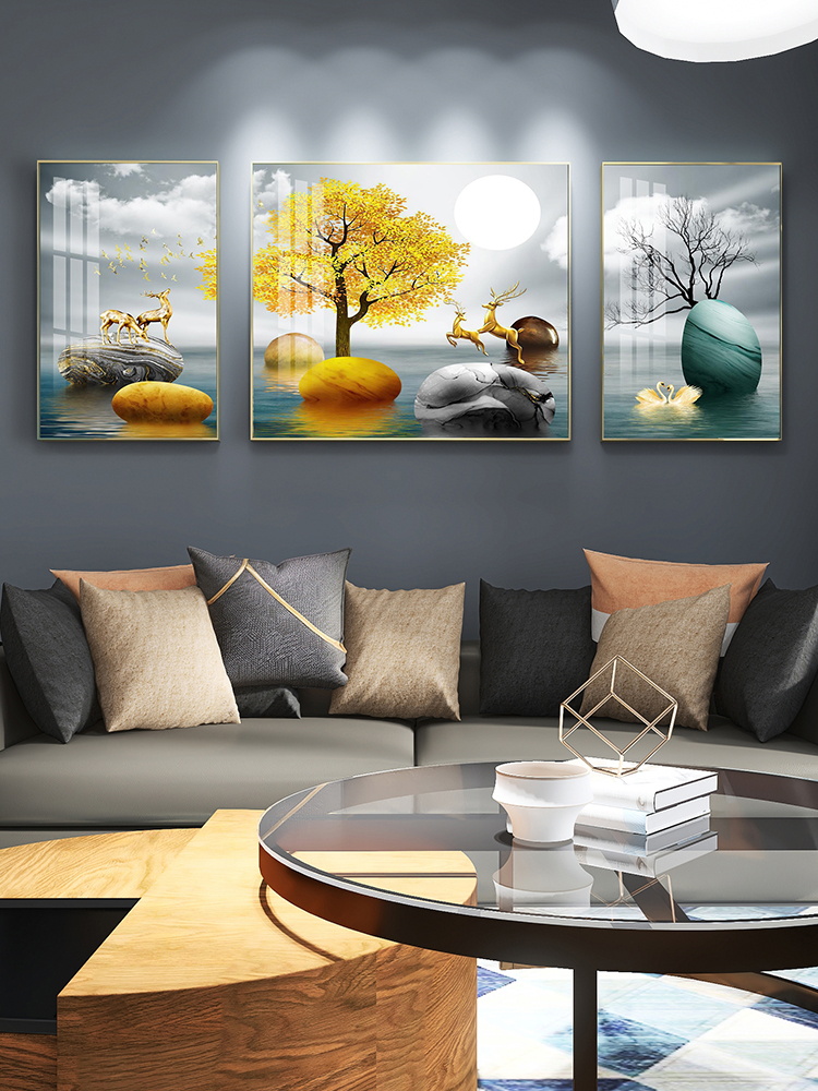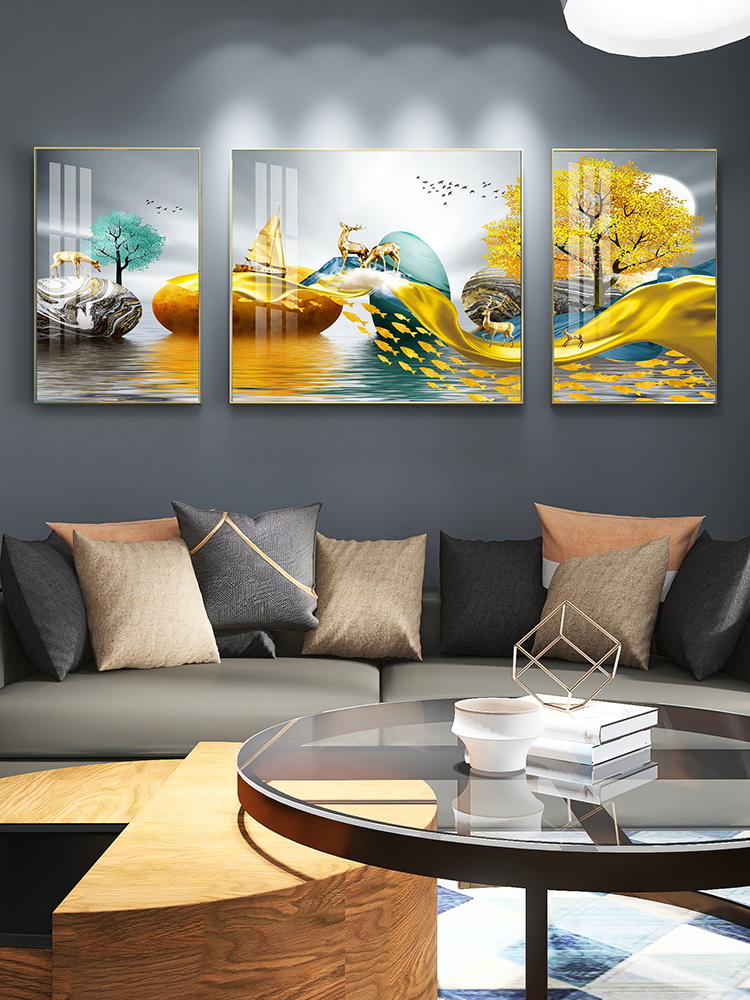 Living room decoration painting sofa Background wall modern minimalist atmosphere light and luxurious upscale hanging painting wall painting crystal porcelain triptych