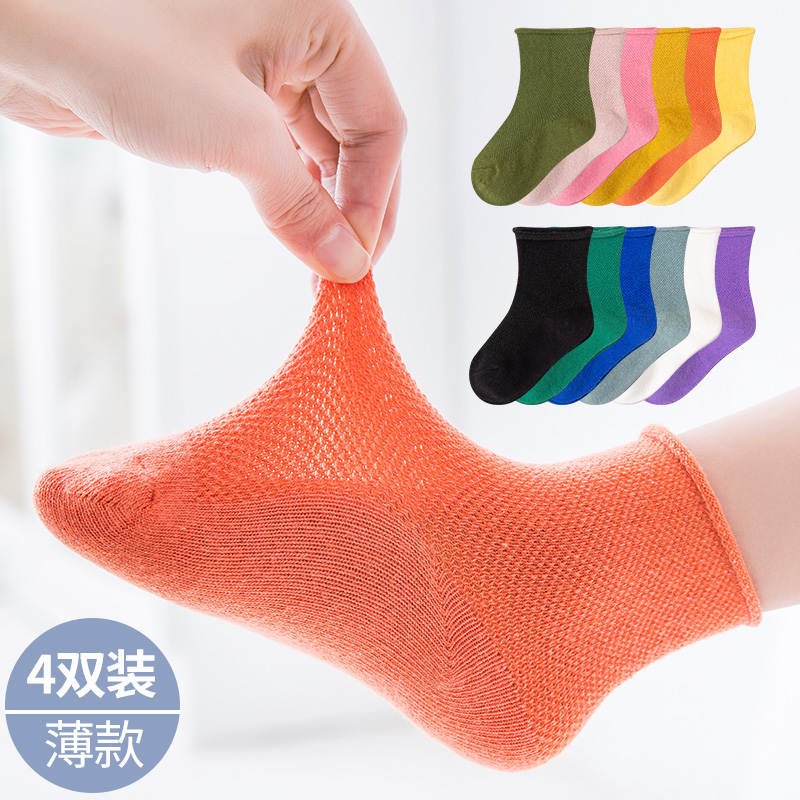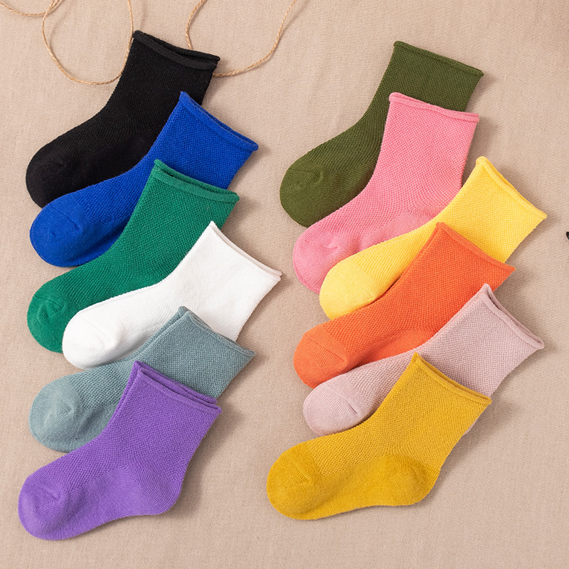 Baby children's socks spring and summer thin mesh boys and girls spring and autumn candy white cotton mid-tube tide ins
