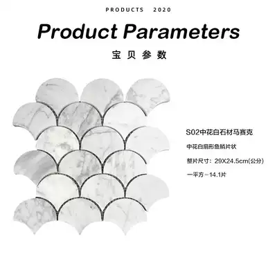 Natural marble mosaic tile background wall gray fan-shaped fish scale sheet Bed and breakfast powder room bar bar