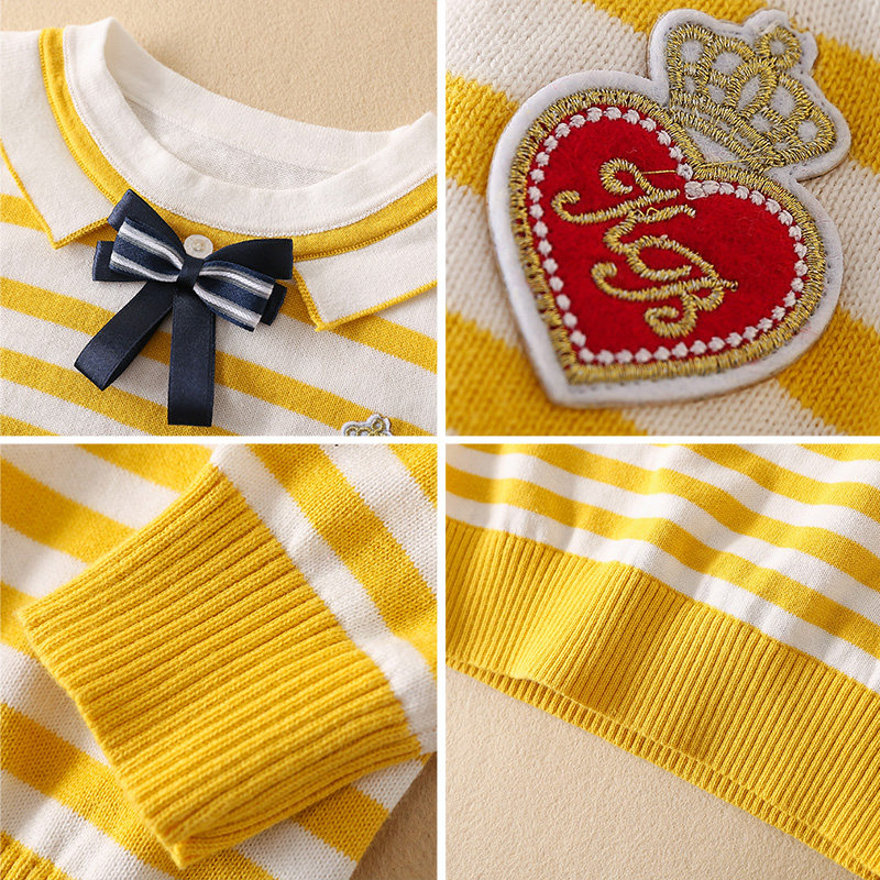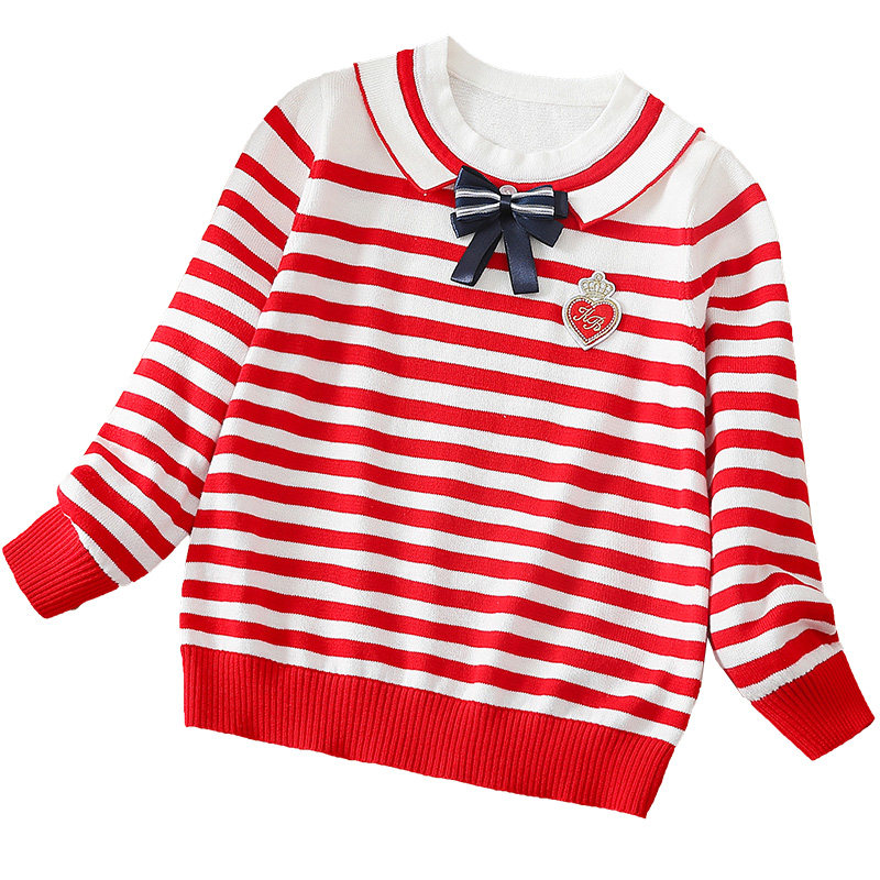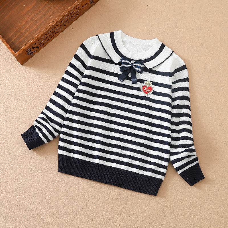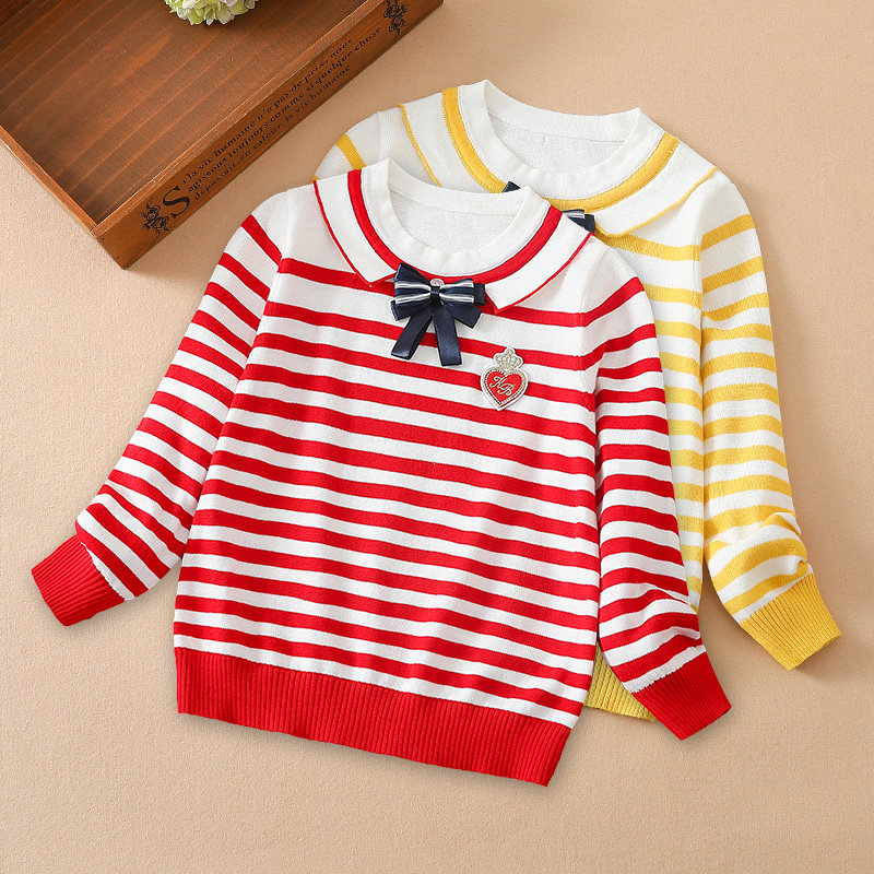 Girl's net red sweater spring autumn style 2022 new sets of headsets big child blouses striped needle woolen sweatshirt thin children