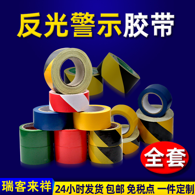 Reflective warning tape 45 meters long and 10cm wide Reflective warning tape 45 meters long and 50mm wide Black and yellow warning tape 18 meters long and 50mm wide Black and yellow warning tape 50 meters long