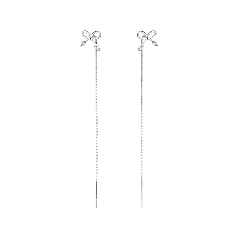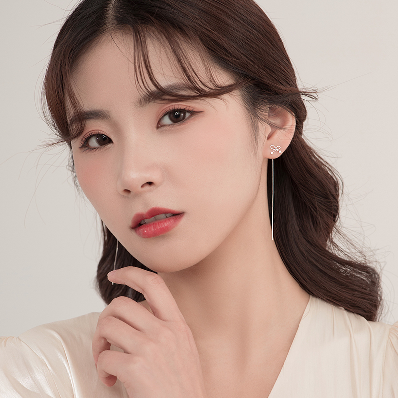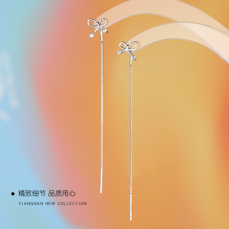(Alley South) 925 Pure Silver Butterfly Knot Ear Necklace 2022 New Tide Earrings Summer Ear Pin Temperament Ear