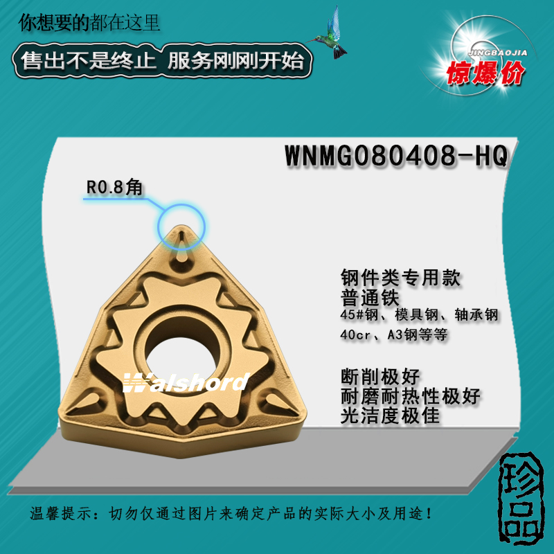 Peach-shaped outer circle CNC blade WNMG080404 080408-HQ polygonal chip breaking cutter head instead of Kyocera