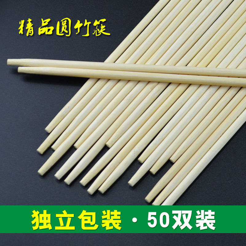 50 Double disposable chopsticks sanitary chopstick natural bamboo chopsticks convenient chopsticks round family picnic chopsticks independent packaging