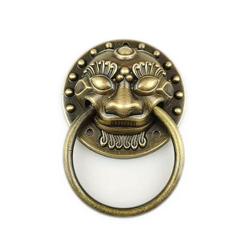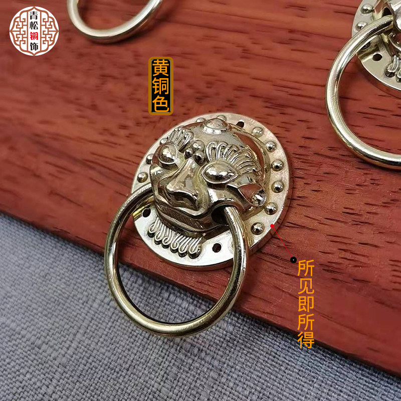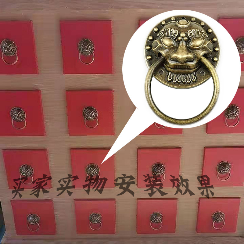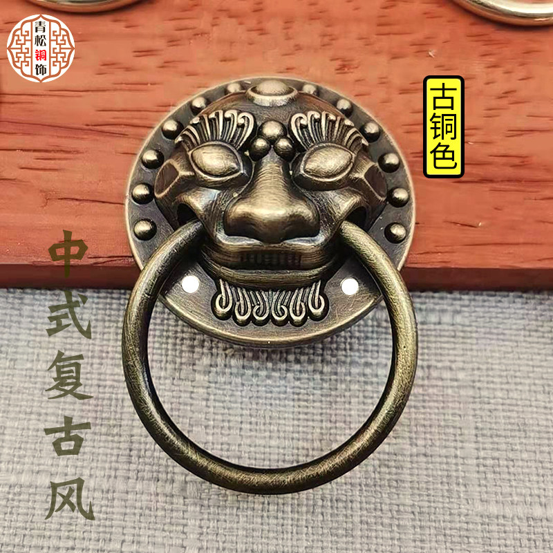 Chinese imitation antique pure copper beast head door pull-ring tiger head lion head solid wood gate copper handle drawer cabinet door small handle
