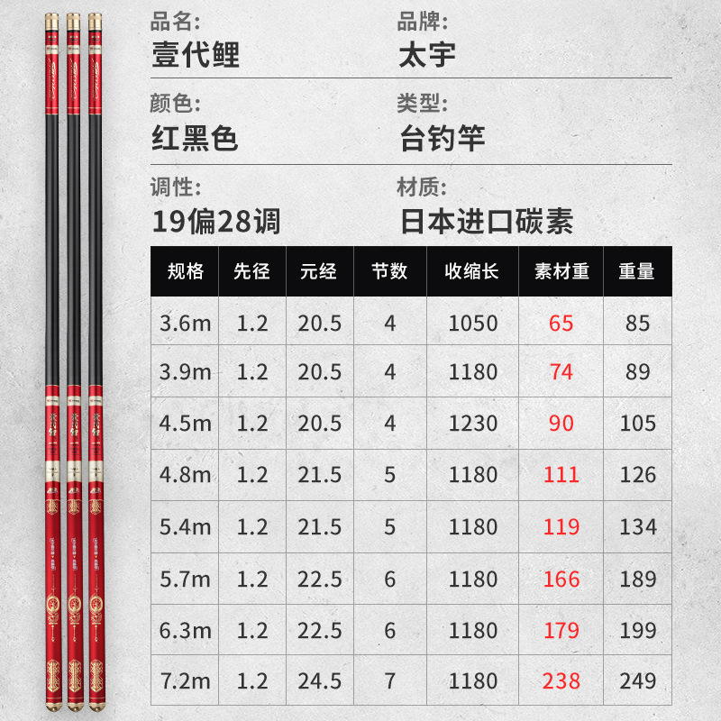 Comprehensive first-generation carp 3 6 meters with a short rod stop Comprehensive first-generation carp 3 9 meters with a short rod with a comprehensive one-generation carp 4 5 meters with a short rod with a comprehensive one-generation carp 4 8 meters with a short rod and a comprehensive one generation