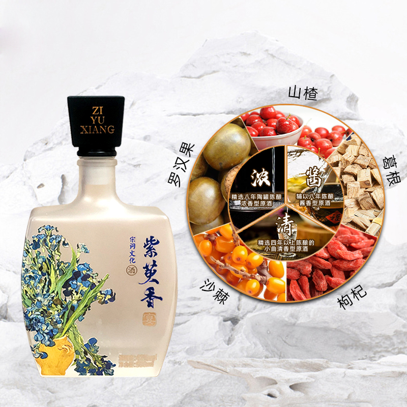 Purple Dogwood banquet Song word culture wine 42 degrees with solid liquid method white wine Hawthorn Sea Buckthorn 500ml