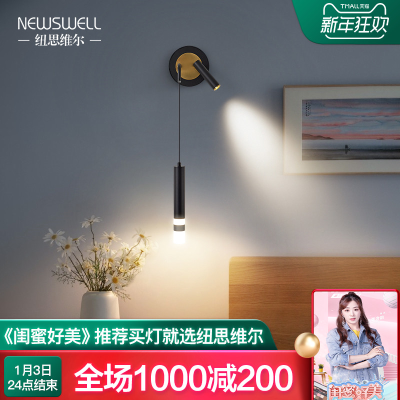 Neweville wall lamp bedroom bedside lamp creative Nordic living room background wall spotlight simple bedside LED wall lamp