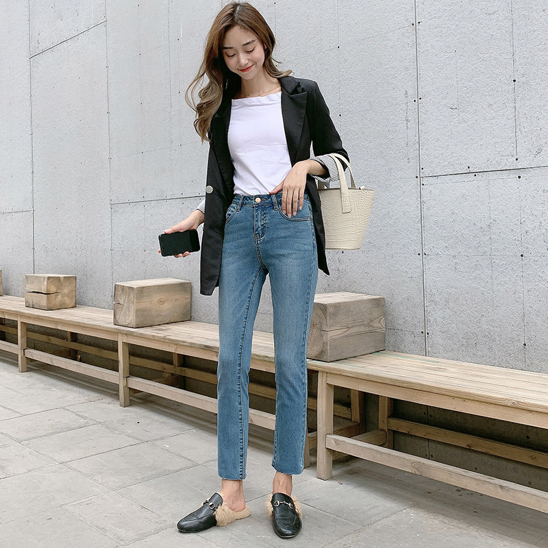 Light Colored Jeans Woman Straight Barrel Loose 2022 New Spring Autumn Small Taller Waist Display Slim And High 90% Pants Tide