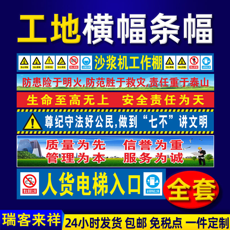 Construction site on-site safety publicity banners Erect Building Pans Groundbreaking of top advertising Custom Dingding Birthday Wedding Construction Big banners Banners Canvas Strips Hanging factory Workshop Safe Banners Signs