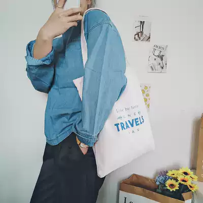 2021 spring new thick canvas bag female casual versatile shoulder bag literary letter Academy style hand bag