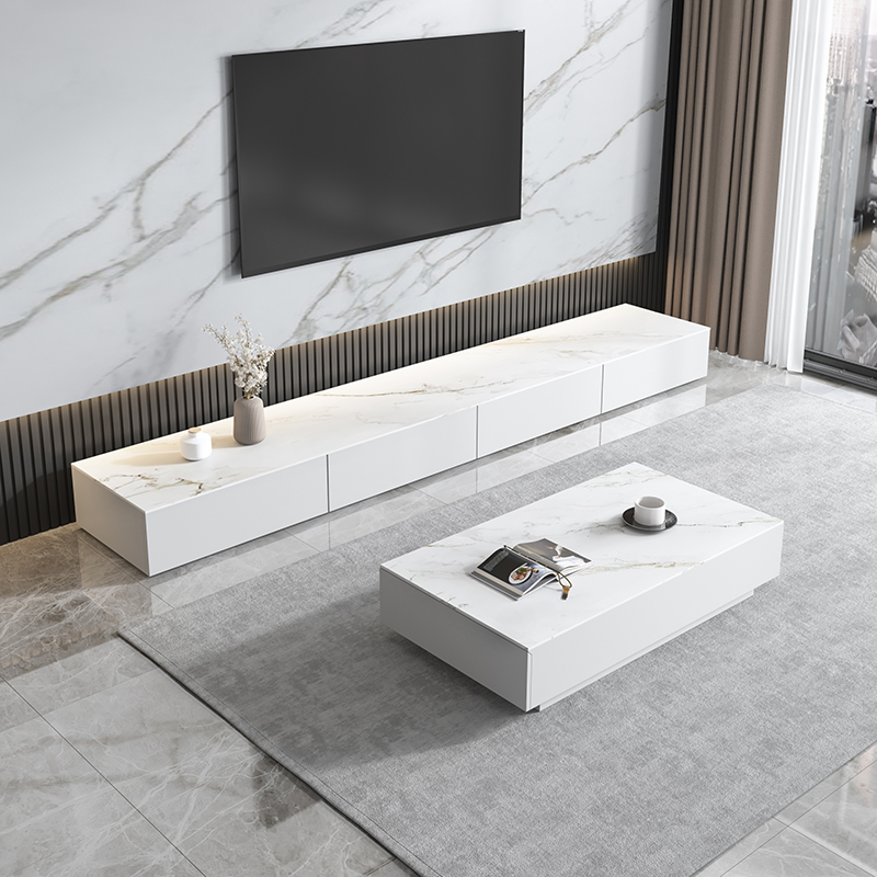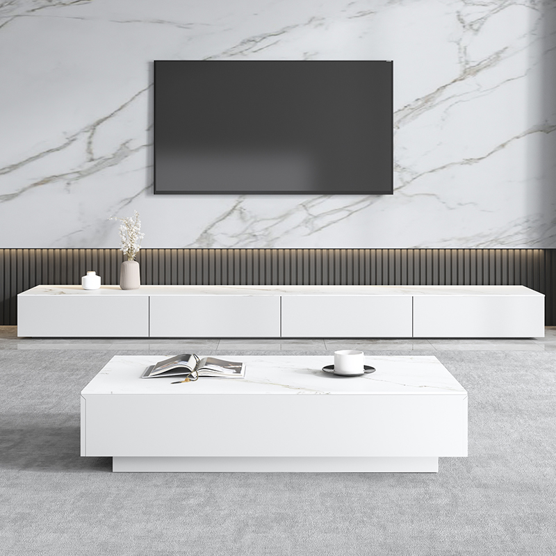 Slate TV cabinet Nordic minimalist small apartment living room solid wood marble minimalist light luxury TV cabinet coffee table combination