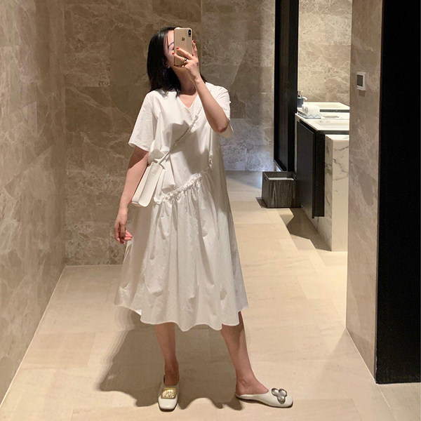 Maternity dress summer fashion short-sleeved cotton summer mid-length version loose large size white skirt summer thin section