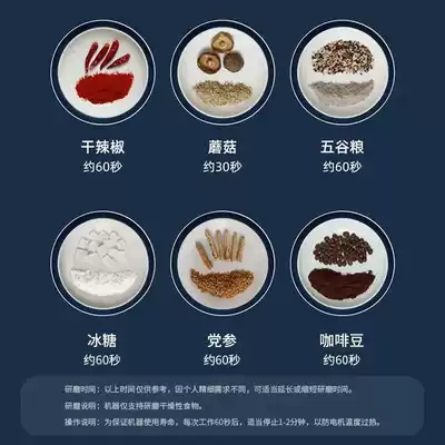 High-power Mill, high-power Mill, brush, high-power Mill, brush, one blade, high-power Mill, brush, two blades, small power (can only grind coffee beans) not recommended