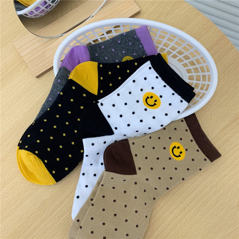 Cherry baa baa smile polka dot color matching lady cute student breathable and comfortable Japanese bubble socks socks girl