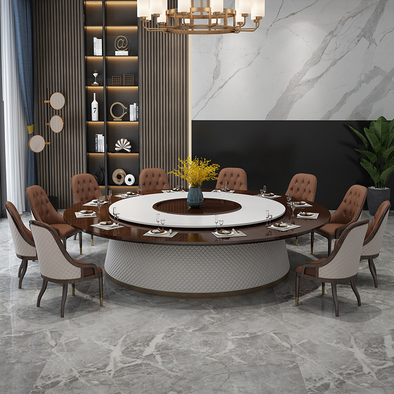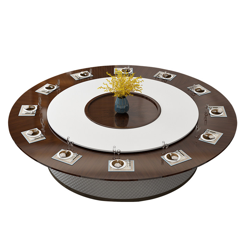 Club box new Chinese hotel electric dining table large round table solid wood automatic rotating large round dining table table and chair combination