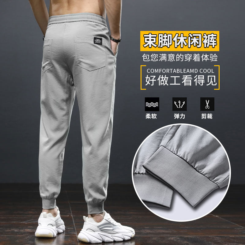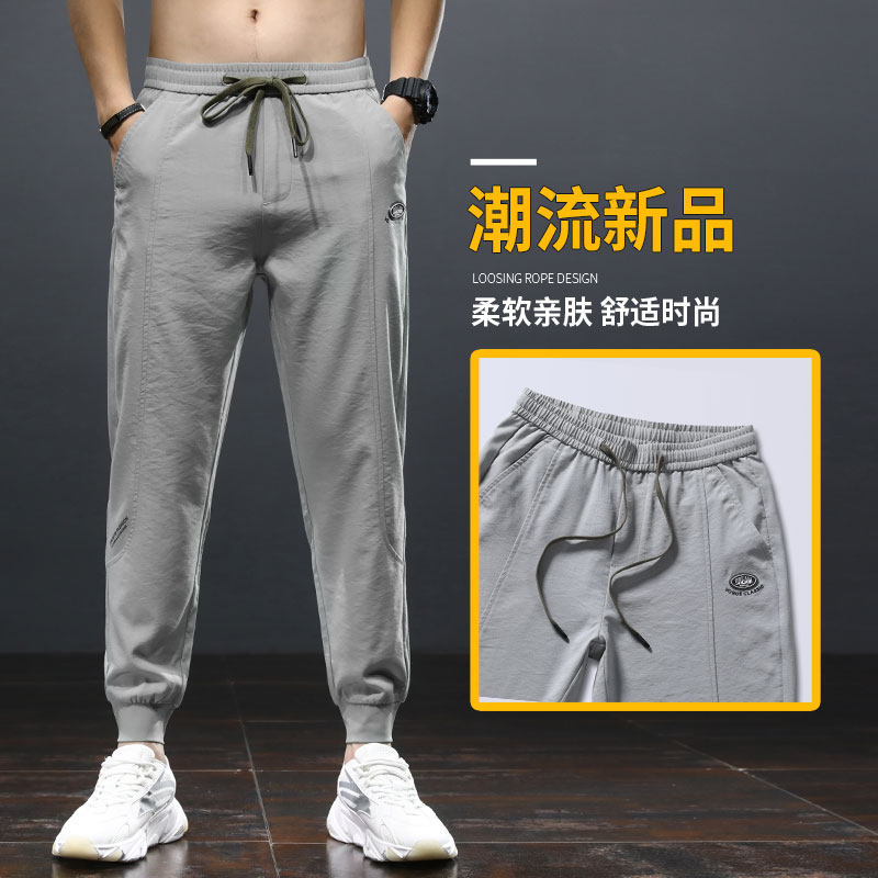 Men's casual pants summer thin loose nine-point ice silk quick-drying summer pants Wild summer drawstring sports pants men