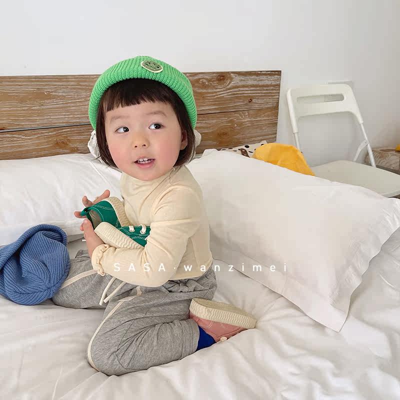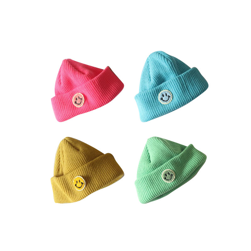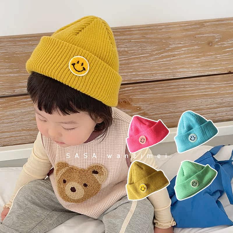 SASA's meatball girl Korean version of the early spring wool hat Children's fluorescent color smiley face cloth label melon skin hat