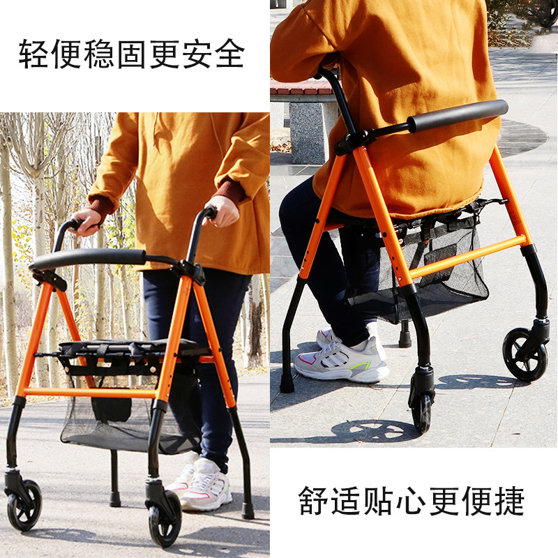 Elderly adult scooter folding shopping seat can sit on four wheels to buy food and walk can push elderly trolley walker