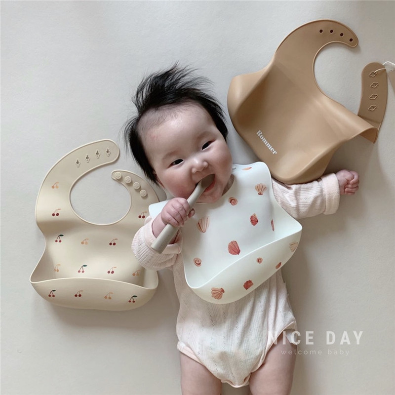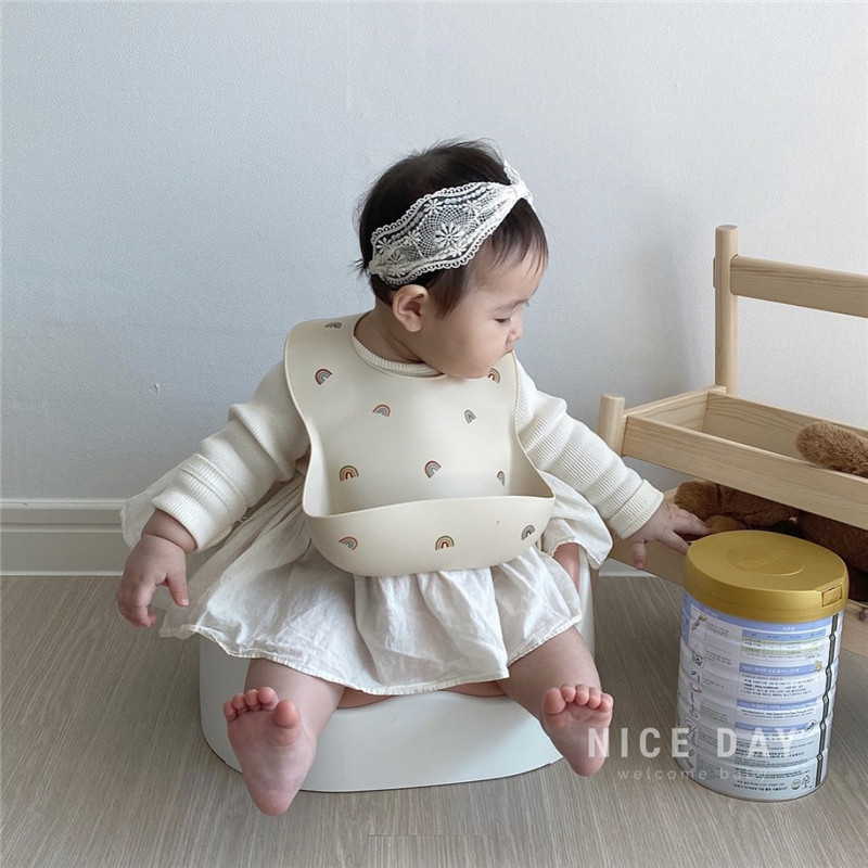 Korea ins Baby eating bib pocket Baby saliva towel Child food eating bib Children's silicone bib anti-dirty artifact