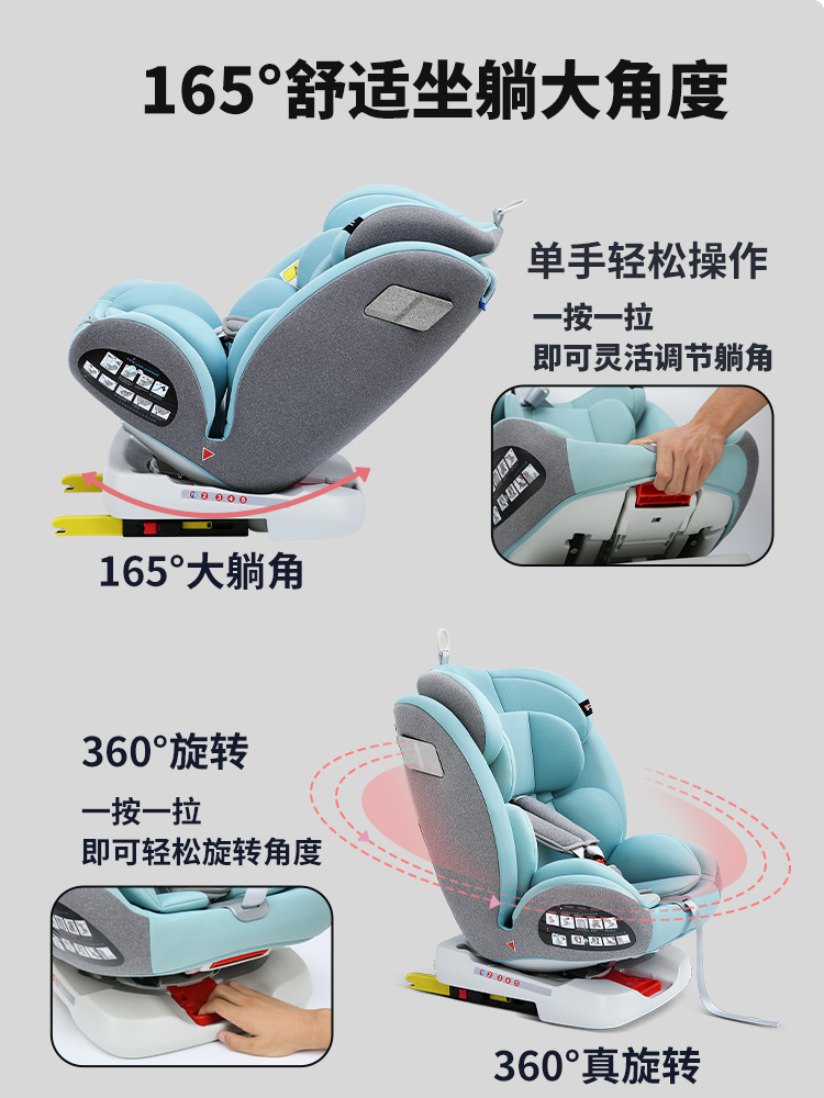 Premium Heather powder (360 Rotating isofix hard interface) injection steel skeleton increased space double certification