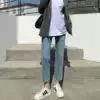 Ripped jeans women's 2021 summer new high-waisted loose high-thin wild nine-point chic straight pants