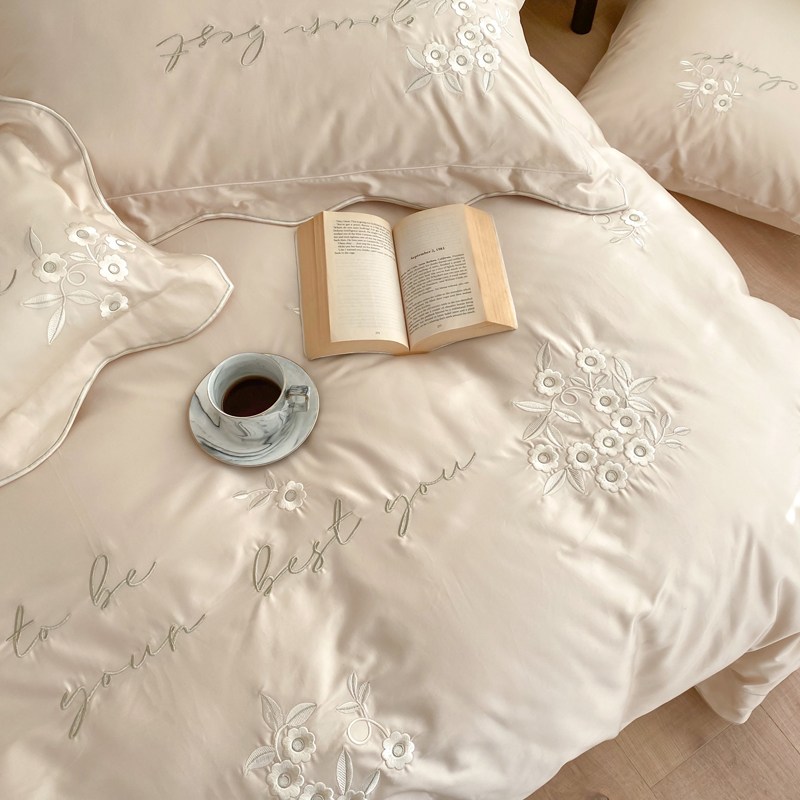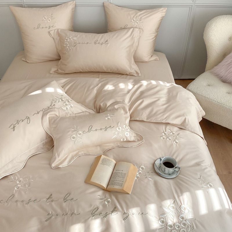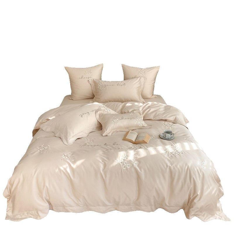 High-end princess style cream color four-piece set pure cotton 100-count simple girly heart bed sheet quilt cover bedding 1 8