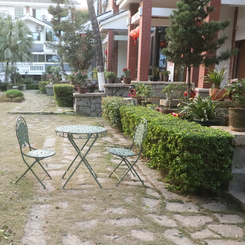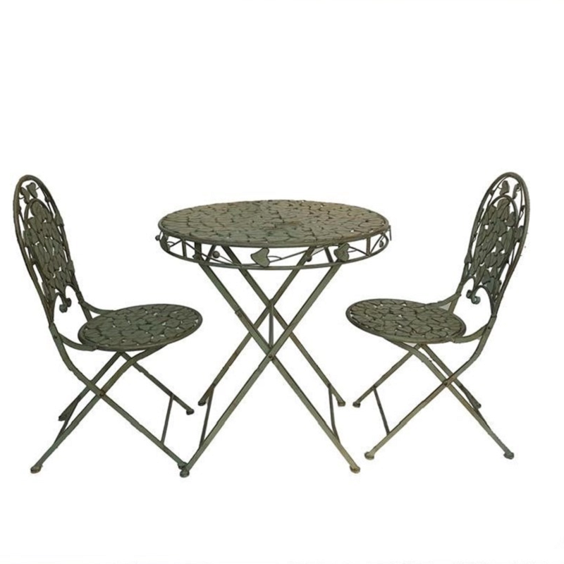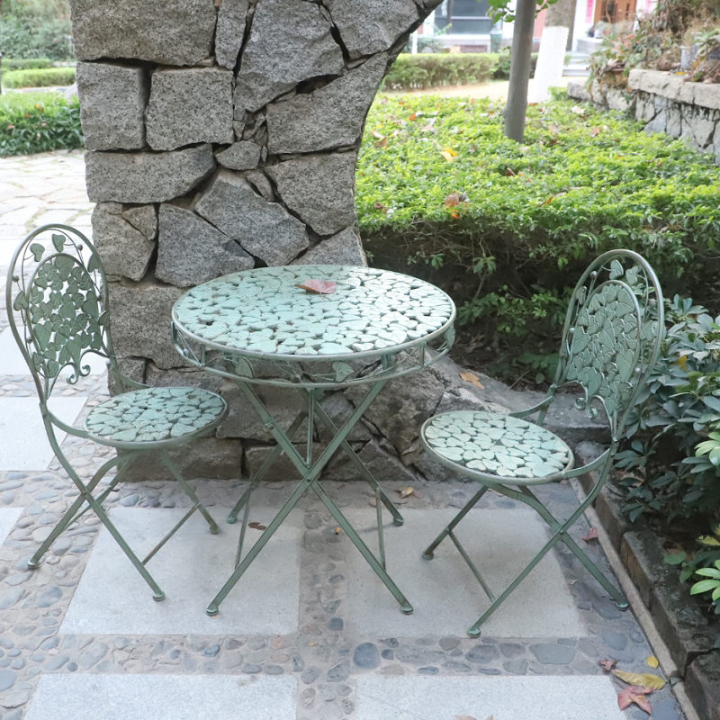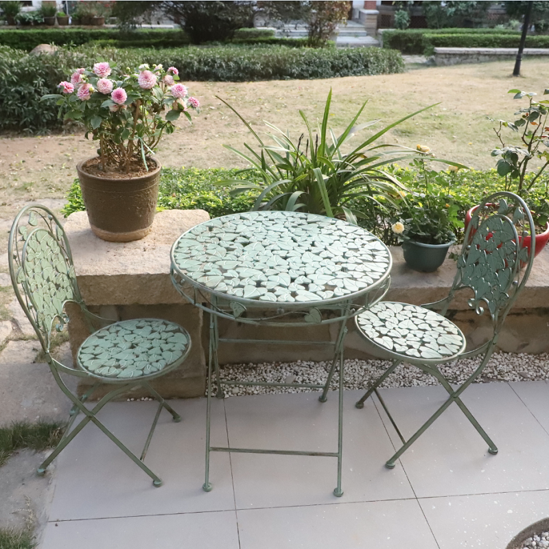 Garden wrought iron table and chairs retro green balcony folding three-piece set leisure terrace courtyard decoration old color tables and chairs
