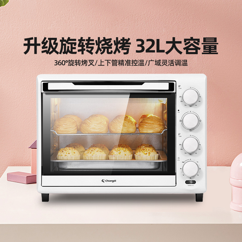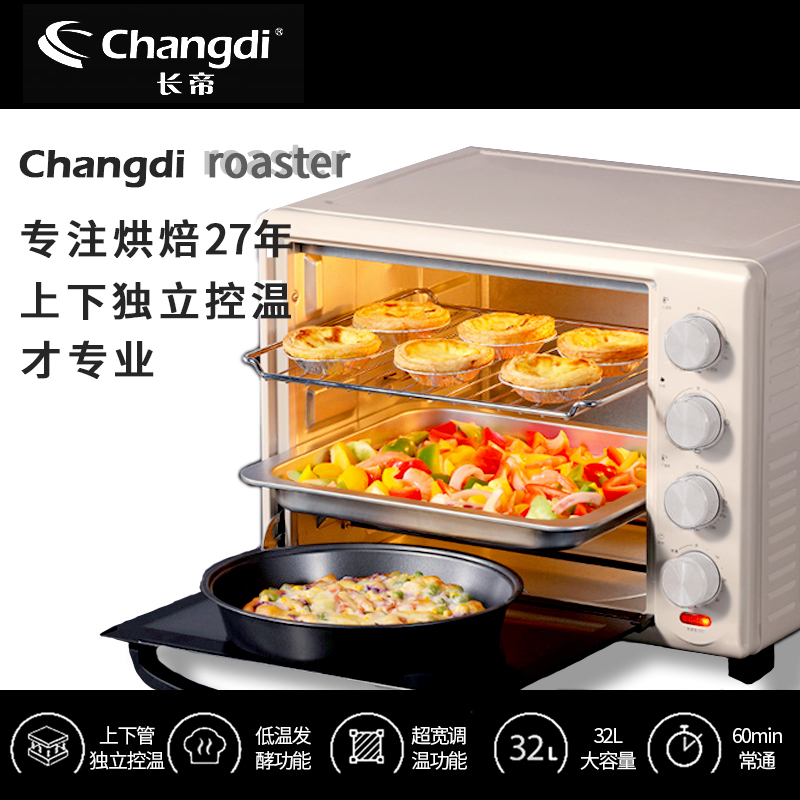 Changdi 32 liters household multi-function electric oven low temperature fermentation upper and lower tubes independent temperature adjustment rotary baking fork Family use