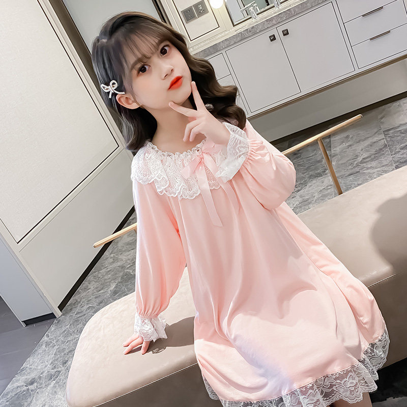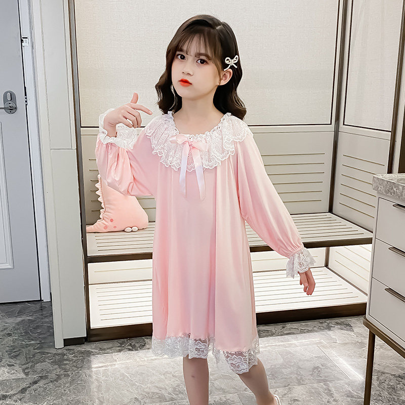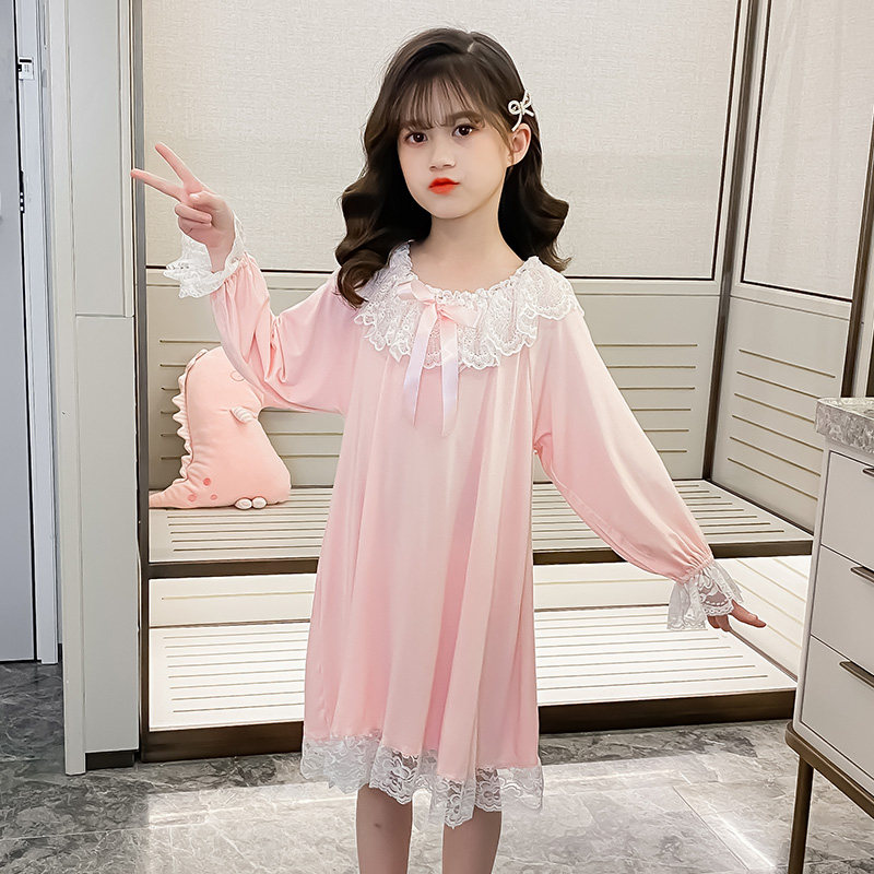 modal princess lace nightdress for girls spring summer