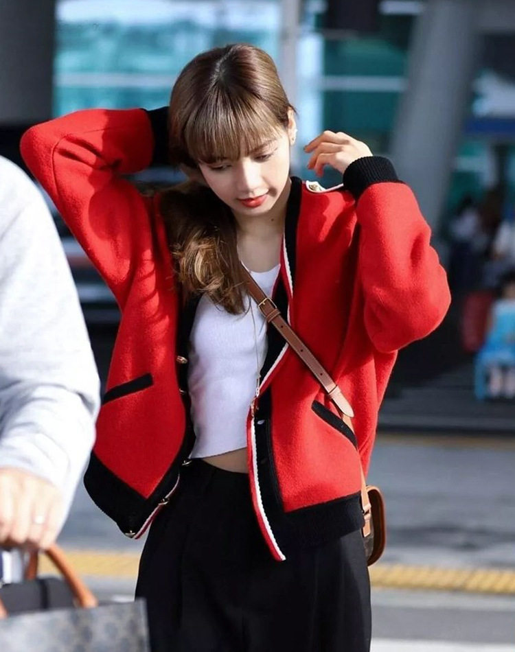 French maje Lisa stars with the same red knit cardiovert and lazy wind splicing short jacket woman